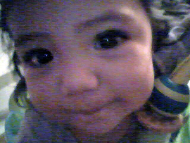 When my darling children were little (hahaha I can say that now without vomiting) when they would get fussy and before I would go stark raving mad, I would take their teary face in my hands and begin what we now call the "worried-mad" game...I'd push their little eyebrows up with my thumb and say "are you WORRIED?" and then I'd push down and say "or are you MAD" and before long it just progressed into pushing up "worried?" and down "mad!" and before they knew it they'd be off into peals of laughter and VOILA! no more tears! To this day they don't know that it was my tactic for getting them to stop being fussy (dang! I wonder if I ought to MARKET this game?). However, this being said, imagine my utter delight when I received this picture of my daughter apparently playing this same game with HER daughter!!! (CHUCKLE)